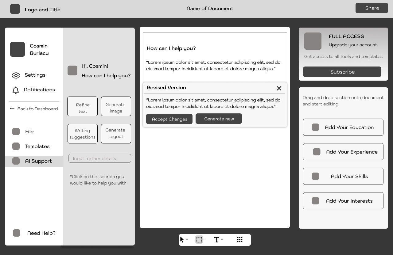 A Document Builder Web App designed to improve users' job market competitiveness by helping them create professional, tailored resumes and cover letters.